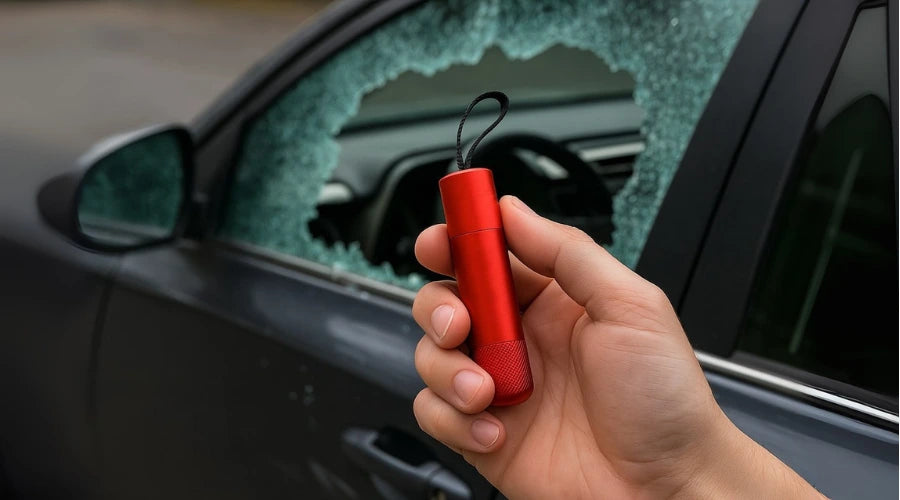 Buy a combination tool that breaks windows and cuts belts. The best models are small, lightweight and fit on your key ring or in the car.